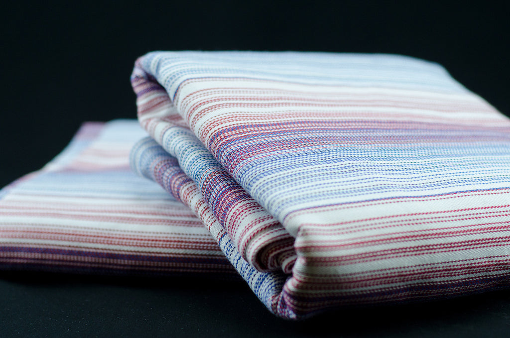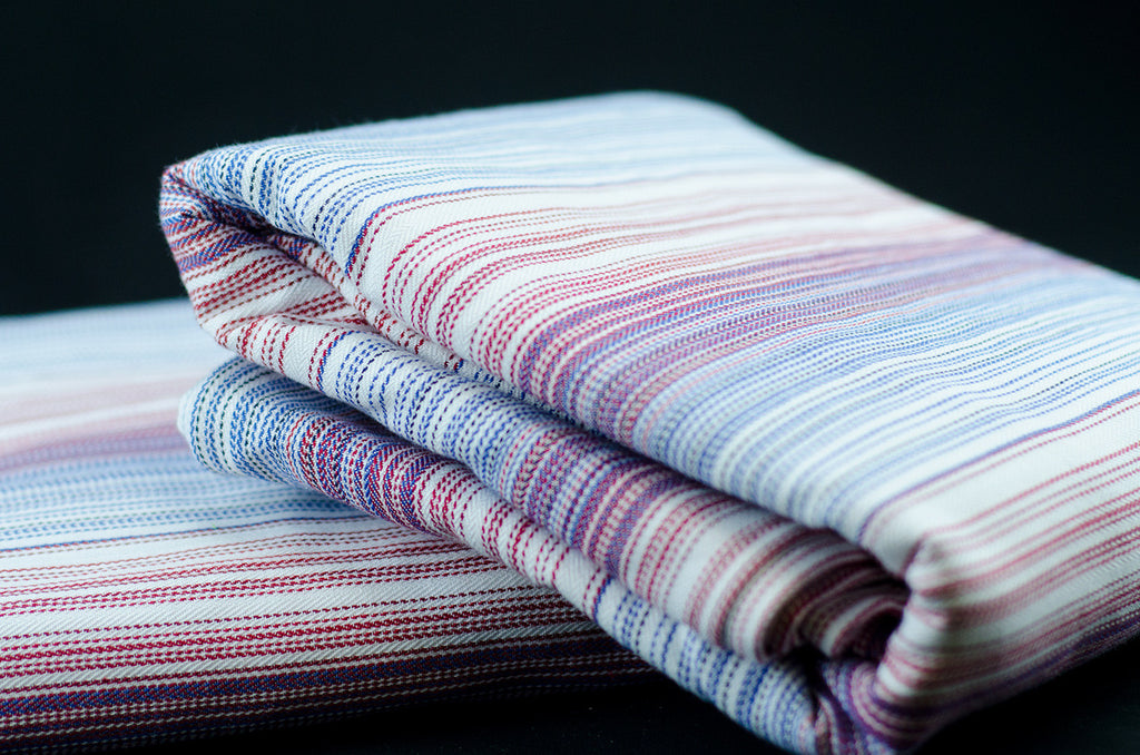 Brave is a medium-thick, solid wrap made to contain your toddler. When wrapping, the passes glide easily into place with a small amount of stretch, making it great for multi-layer carries. Brave will be an ideal introductory wrap for wearers who are new to wrapping. This wrap has a smooth in-hand texture while still offering light grip. It will take some work, but once broken in, Brave will cozily snuggle a smaller baby. Our classic red, white, and blue design is a versatile addition to any babywearer's collection.