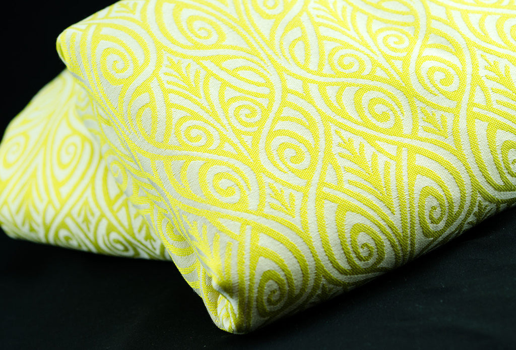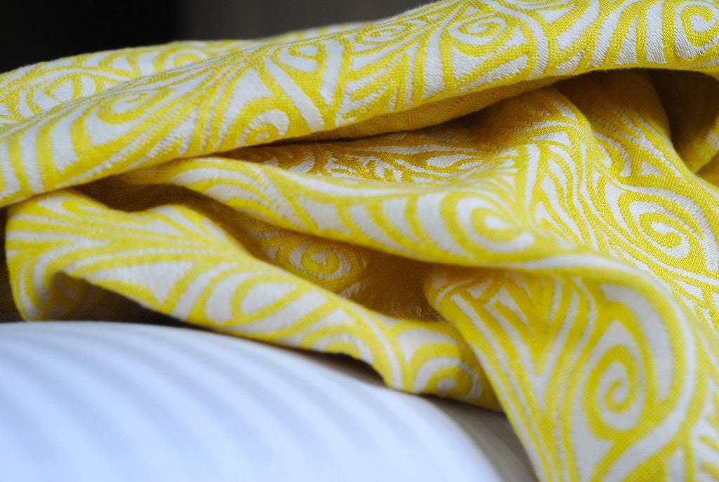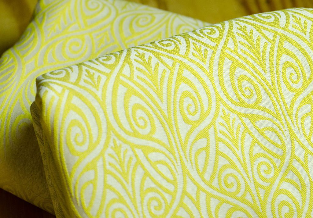 Secese Capella is woven on an ecru warp with mercerized cotton yellow weft.